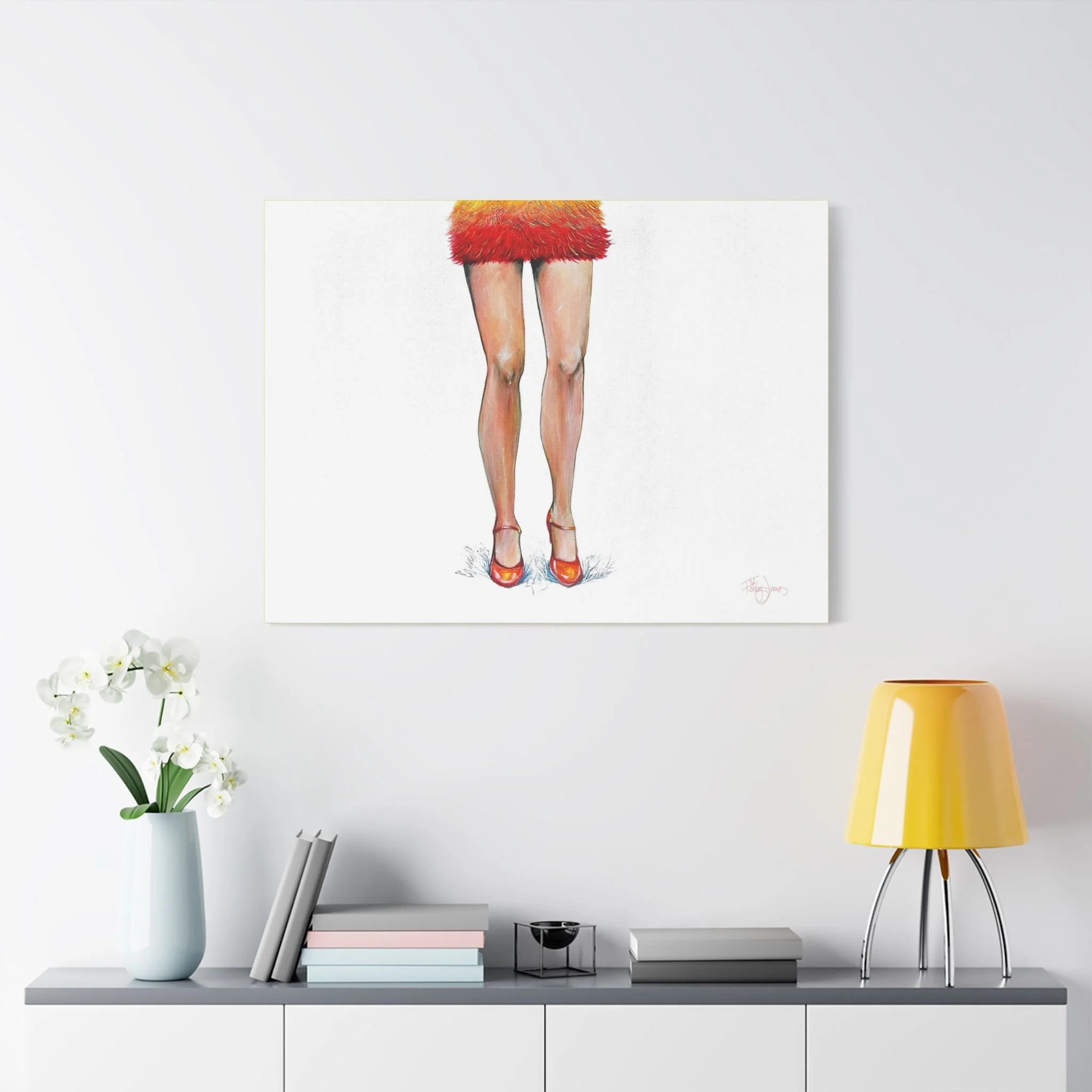 All of which is to say: this painting is not decorative, though it will look extraordinary on your wall. It is not merely a tribute, though it honors a woman who has earned considerably more tribute than she has received. It is an argument, rendered in orange and gold and the particular swagger of a woman in heels who has been underestimated for sixty years and found the whole arrangement rather amusing.